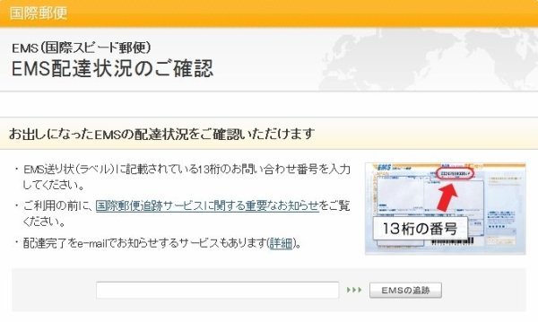 日本郵便サイト【http://www.post.japanpost.jp】での荷物追跡番号確認ページの画像(参考用)