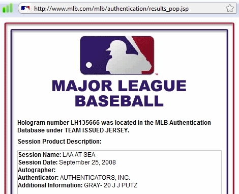 証明書:ジャージ:MLB公認ホログラム、当社ホログラム+証明書