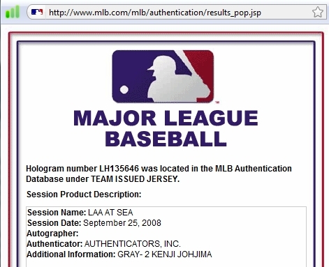 城島健司2008年実使用シアトル・マリナーズロードジャージ+ズボンセット 証明書:ジャージ:MLB公認ホログラム、当社ホログラム+証明書 ズボン:当社ホログラム+証明書 販売価格:完売 ジャージはシーズン終了後に鑑定されましたのでMLBホログラムでは「球団支給」ジャージ と登録されてありますが良い使用感があり確実に城島が使用したジャージです。 ※このジャージと同日にMLBに集められ・鑑定され同じく「球団支給」ジャージと登録された JJ PUTZのヘビー・ユーズドのジャージの画像をご覧ください。 参考になると思います>>JJ PUTZ 2008年マリナーズ実使用ジャージ ![]() ![]() ![]() |